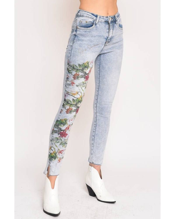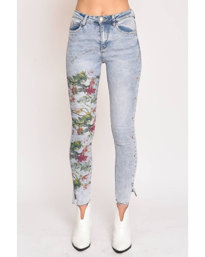 SKINNY JEANS WITH FLOWERS PRINT